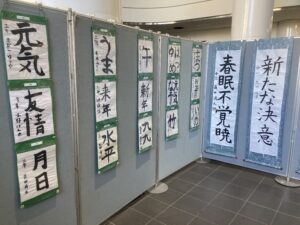 2025年12月26日(金)の書き初め教室をご受講いただいた皆様の作品を含む書道作品を展示しています。(入場料無料)