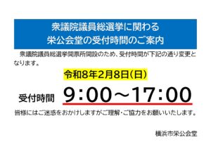 衆議院議員総選挙に関わる栄公会堂の受付時間のご案内